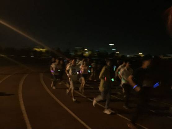 活动伊始,学生会负责人给每一位参与者派发荧光棒,随后全体成员在操场以荧光棒摆出各种造型拍照留念,紧接着李小力副书记亲自带领着大家启动本次荧光夜跑活动。生命在于运动,文理旗帜和学子步伐同行,活动参与者情绪高涨,一小时后,在参与者欢呼声中结束本次活动,同学们纷纷表示虽然过程较艰辛,但是心中依然快乐。