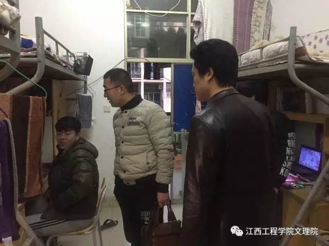 冯新红一行人从平时的饮食、住宿条件、学习情况等方面来询问宿舍的同学,并不时的提醒同学们在这样一个寒冷的冬天里要及时的添加衣物,以防生病。