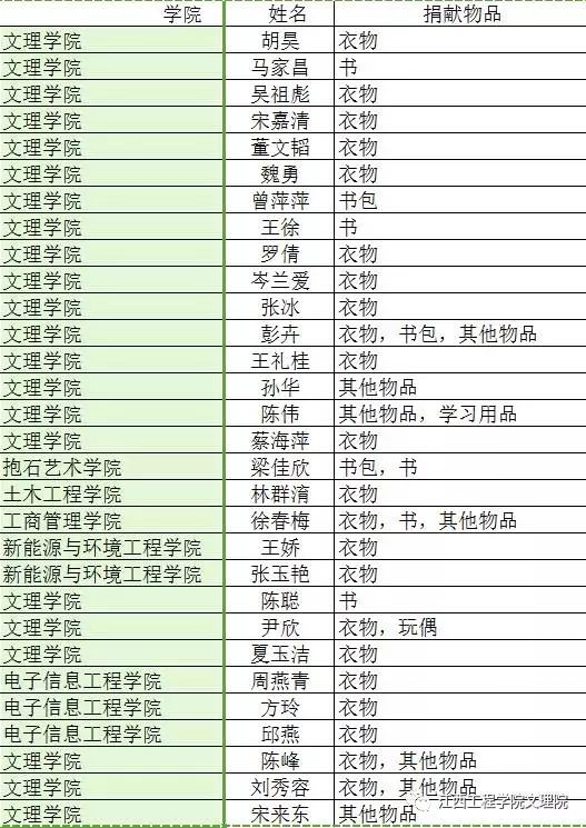 此次开展图书旧物捐献活动,不仅是为了三下乡,为缺少书本的学校募捐到更多的书,让受捐助的孩子感受到社会大家庭的温暖,而是能够让孩子们从中受到鼓励,怀着梦想向前冲,为祖国的花朵洒下希望之水。同时增加大学生的责任感,以激励其更好地学习,为社会奉献一己之力。 其他一些捐赠的物品也能根据需要被分配,使我们遗忘在角落的东西,能在另一个角落发挥光彩,帮助孩子更快乐开心的学习,将江工的爱泼洒出去,生根发芽。