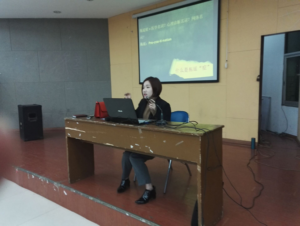 杨艳博士围绕“拖延的心理因素”、“拖延的原因及性质”、“拖延的坏处”及“战胜拖延的策略”等主题,给在场的师生分析了学习生活中经常遇见的一些疑难问题,并给大家作了相应的指导。